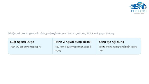 Để hiệu quả, doanh nghiệp cần kết hợp luật ngành Dược + hành vi người dùng TikTok + sáng tạo nội dung.